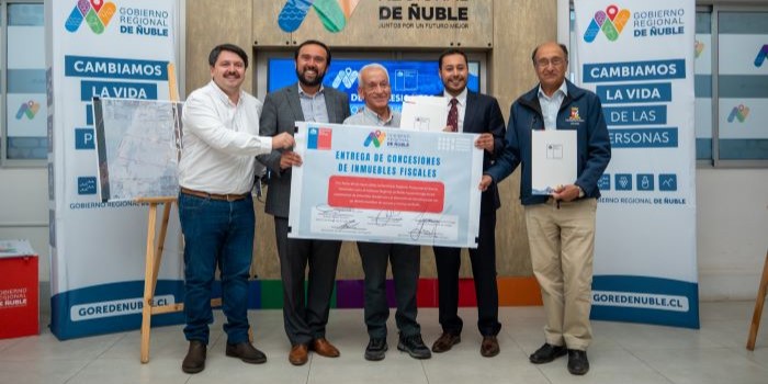 Marzo 2026: Un total de cuatro concesiones de uso gratuito de inmuebles fiscales entregaron hoy el Gobernador Regional, Óscar Crisóstomo, junto al seremi de Bienes Nacionales, Rodrigo Baeza, las que van en beneficio de la Asociación de Municipalidades del Laja Diguillín, de la Asociación de Municipalidades del Valle del Itata y de la Municipalidad de Yungay para ser utilizadas en el desarrollo de iniciativas que impactan directamente en sus comunidades.