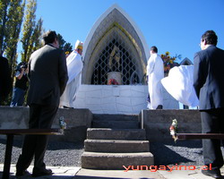 Domingo 26 de Abril a las 11:00 horas se dio inicio a la Inauguración de Gruta de la Virgen del Carmen ubicada en Sector Norte de Cholguán. La ceremonia fue presidida por el Obispo de Chillán Monseñor Carlos Pellegrín Barrera y Sacerdote de nuestra comuna Luís Rocha, también asistieron el Alcalde Pedro Inostroza, Sub-Gerente-Producción de Paneles Arauco S.A. Francisco Montt, Jefe de Recurso Humanos Patricio Troncoso, dirigentes de Juntas de vecinos, representantes de los Trabajadores y publico en general. Cabe mencionar que dicha Gruta y Capilla Inmaculada Concepción fueron remodeladas por completo con el aporte de la Empresa Paneles Arauco S.A. Luego de la inauguración el Obispo oficio una Misa donde dio la bendición al Cristo de Madera y también a los Trabajadores con motivo al próximo “Día del Trabajador”. Fotografías
