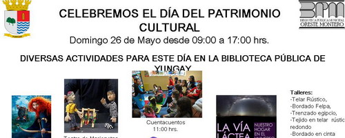 Yungay, con un nutrido calendario de actividades la Municipalidad de Yungay celebrará este domingo 26 de mayo el “Día Nacional del Patrimonio Cultural 2013”. Paulina Ávila Pinto, administradora de la Biblioteca Pública de nuestra comuna señalo al Portal Yungayino.cl, que ese día se abrirán sus dependencias a toda la comunidad y alrededores a partir de las a las 09:00 horas, para inaugurar una exposición sobre la “La Vía Láctea”, para continuar a las 11:00 horas con “Cuentacuentos” para los niños, asimismo a las 12:00 horas se presentara “Teatro de Marionetas”, a las 13:00 horas se presentara un documental de “Tesoros Humanos”, a las 15:00 horas se mostrara la película “Valientes” y a las 16:00 horas “Kamishibai”, también destacar que durante todo el día habrá “Chinchineros y Organillero”, además del personaje de “Don Leo”. Finalmente mencionar que el Día del Patrimonio Cultural de Chile es una instancia ciudadana de celebración y reflexión en torno a las diferentes dimensiones de nuestra herencia cultural y desde su inicio, en el año 2000, se ha perfilado como una de las principales actividades culturales a nivel nacional, es por eso que la Biblioteca invita a todos a disfrutar de estas actividades.