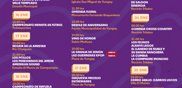 Yungay, enero 2026: Con una nutrida programación cultural, recreativa y deportiva, la comuna de Yungay dio a conocer oficialmente su Calendario de Actividades de Verano 2026, en el marco de la conmemoración de su...